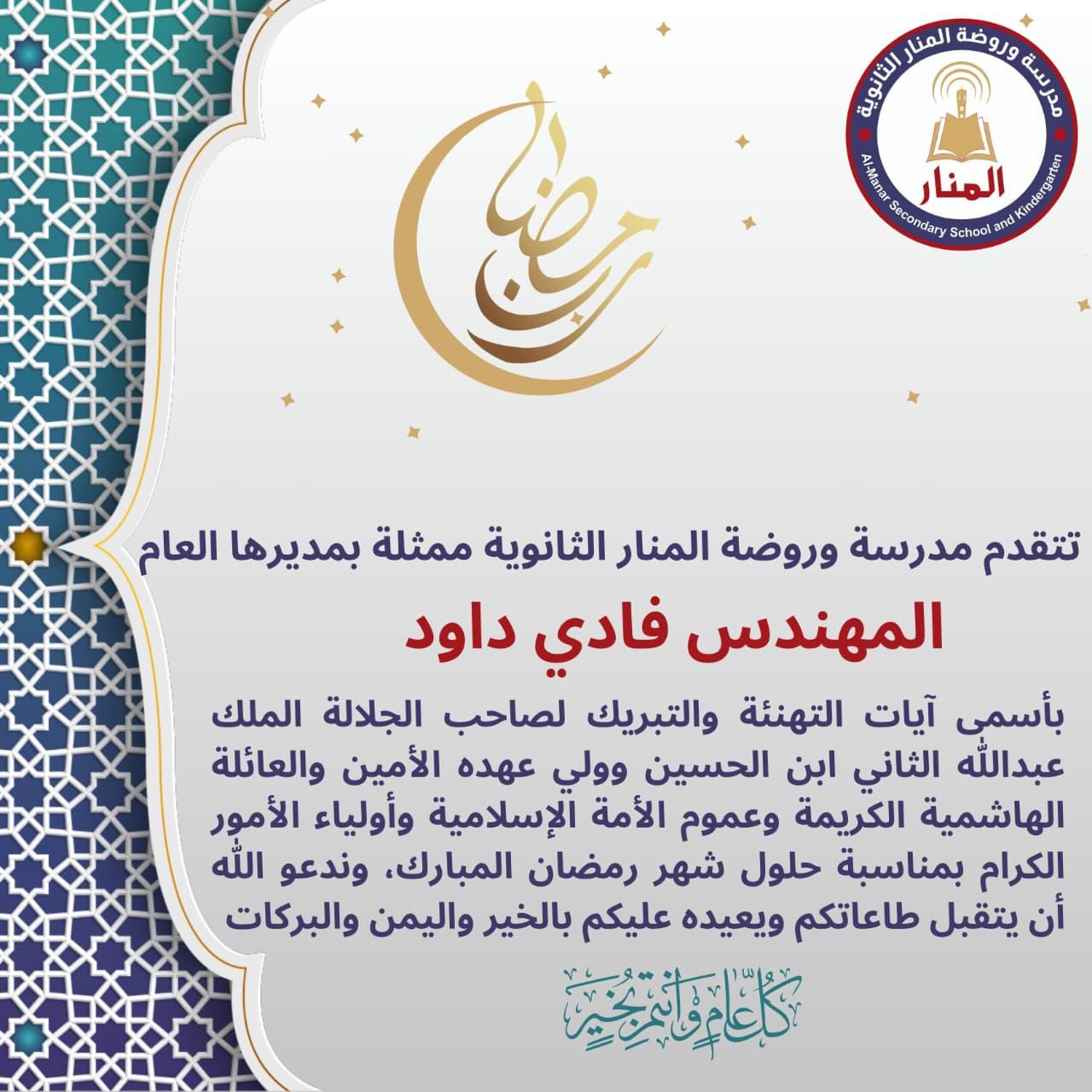 تهنئة بشهر رمضان المبارك أعاده الله علينا وعليكم بالخير واليمن والبركات